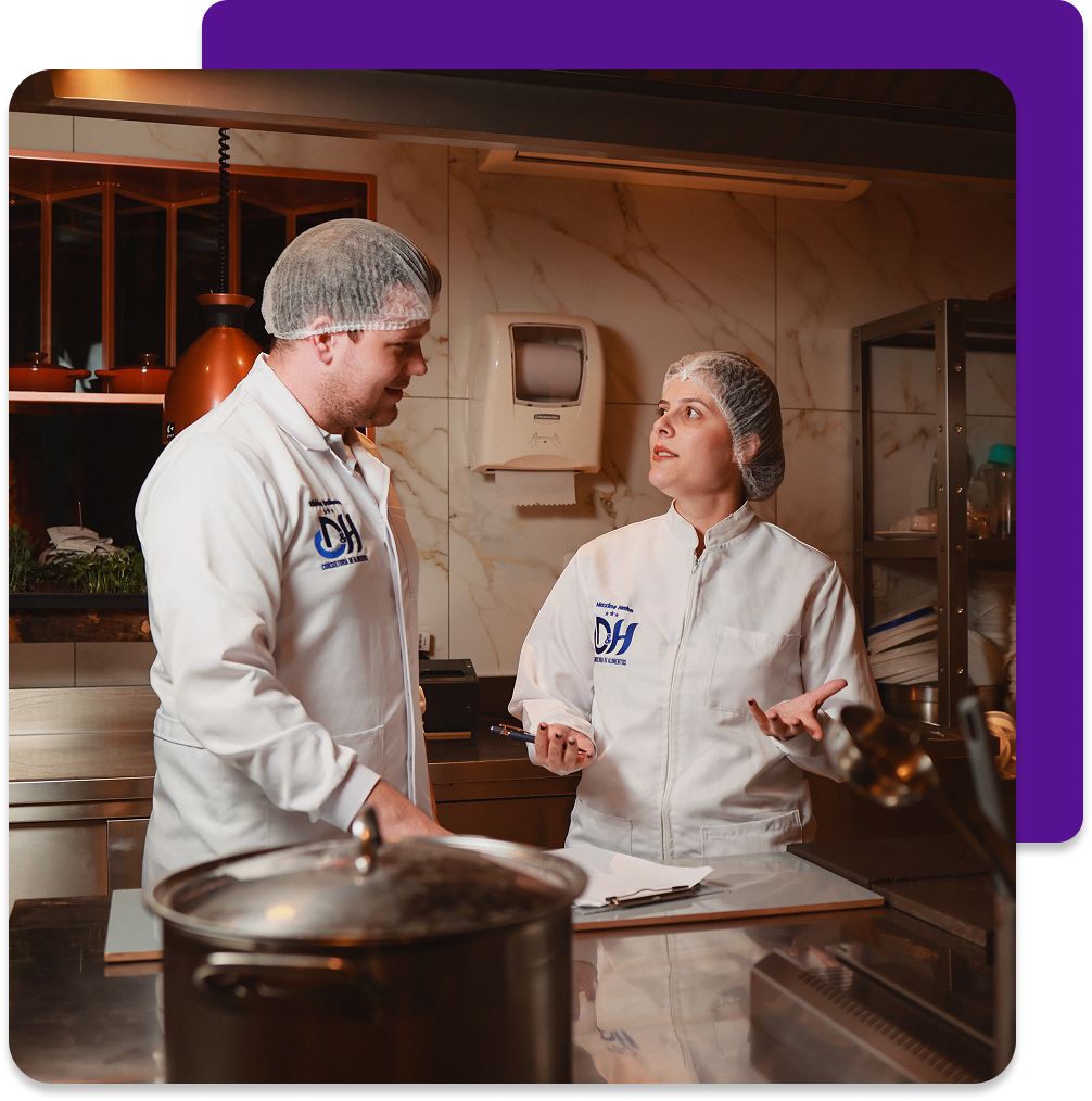 Criada por Maxine e Vinicius engenheiros de alimentos apaixonados por eficiência, organização e resultado a D&H Consultoria nasceu do desejo de oferecer uma consultoria contínua, com foco na melhoria real dos resultados em serviços de alimentação.